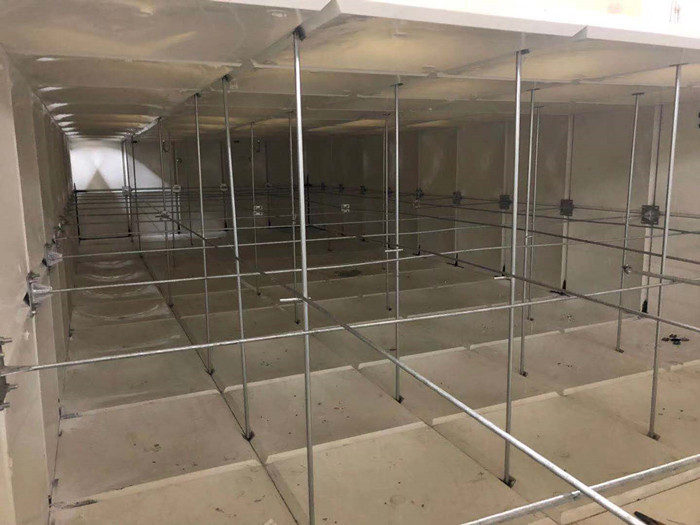 玻璃鋼水箱內(nèi)部會(huì)有一些不銹鋼橫槽在里面,這些鋼筋擺放的位置不同,有的橫放、有的斜放,有的甚至是豎立的一根根柱子。玻璃鋼水箱內(nèi)部有一根主拉筋,這種主拉筋的作用是水箱不易變形。大家知道水箱承受的重量是很大的,如果沒有其他的支撐,水箱就會(huì)變形,所以需要使用鋼筋來起到支撐的作用,大型的水箱間距會(huì)頻繁一點(diǎn)。斜筋的作用是為了分擔(dān)主拉筋的一些壓力,主柱是為了起到支撐的作用,為了頂住頂板,防止塌陷。拉筋簡(jiǎn)單來說就是拉兩邊的水箱板的,為了固定水箱,水箱里的水灌滿了水箱不會(huì)漲破,對(duì)水箱起著重要作用。如果只用水箱板和膠條組成我們需要的水箱,雖然不滲水了,但是還不能盛水。因?yàn)槭⑺笏鋾?huì)承受一個(gè)向外的張力,要加上拉筋系統(tǒng)受力,否則玻璃鋼水箱很容易撐壞。拉筋系統(tǒng)有圓鋼,內(nèi)外拉筋板,對(duì)拉螺栓緊固。這樣玻璃鋼水箱就可以裝水了。
