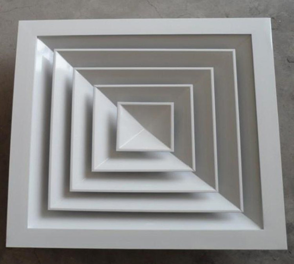 方形散流器先調(diào)挺直,表面光潔,葉片角度為固定式,葉片采用夾角片沖壓連接,整個葉片與邊框采用分離式結(jié)構(gòu),以方便安裝與調(diào)節(jié)。設(shè)計時可根據(jù)房間造型不同,選用不同出風(fēng)方向的散流器,可與調(diào)節(jié)閥配套使用鋁合金表面經(jīng)陽極氧化處理,也可根據(jù)用戶要求進行靜電噴塑處理。